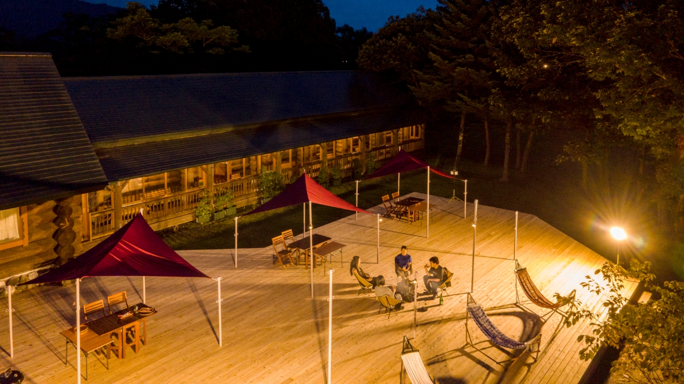 屋外ではお食事や焚き火、サウナのととのいスペースとしてもご利用いただけます。