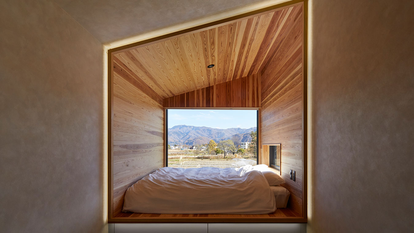 個室のお部屋の大きな窓からはベッドに寝ころんだまま白馬三山を望め、のんびり寛いでいただけます。